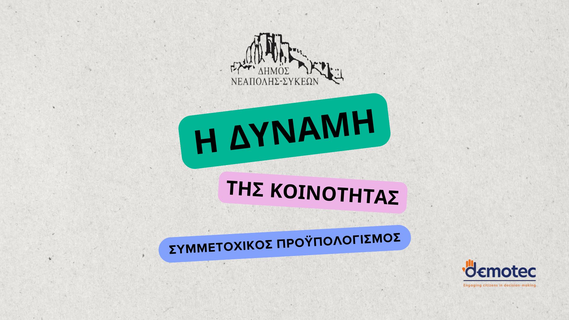 Ο δήμος Νεάπολης-Συκεών αποφάσισε για το 2024 να πραγματοποιήσει Συμμετοχικό Προϋπολογισμό όσον αφορά: